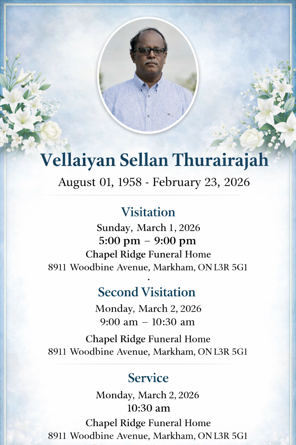 அப்பப்பா, நீங்களே எமது முன்மாதிரி; எமது உயிர் நண்பன். நீங்கள் கற்றுக்கொடுத்த நற்பண்புகளுக்கு மனமார்ந்த நன்றிகள். உங்களை நினைத்து ஒவ்வொரு நொடியும் ஏங்குவோம். உங்களின் பேரன்/பேத்தியாக இருப்பதற்கு நாங்கள் பெரும் பாக்கியம் செய்திருக்கிறோம் நீங்கள் மறைந்தாலும், என்றும் எங்கள் நினைவுகளில் வாழ்வீர்கள்.